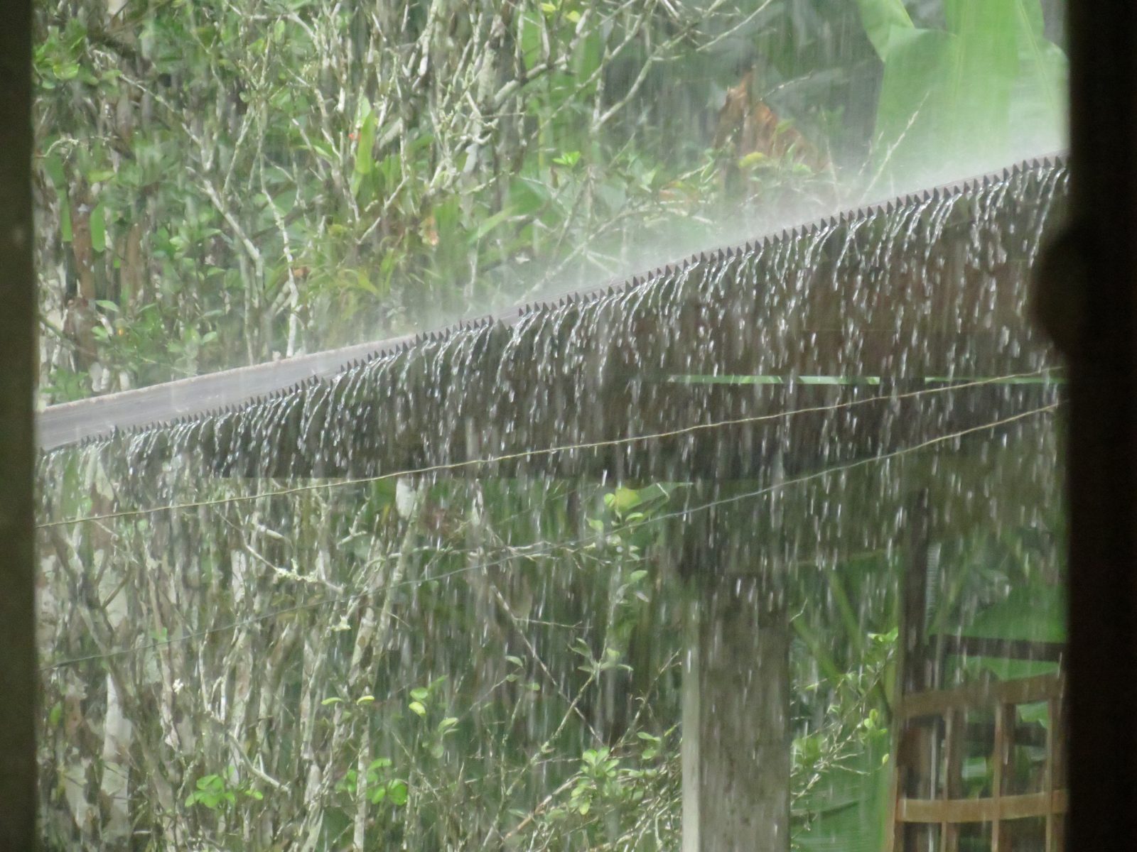 And then I discovered Diamante, a long village that bordered the river from a high ridge for a kilometer or so without encroaching into the forest. It was a very welcome sight. Torrential rains with tumultuous thunderstorms had raised the level of the river by three meters in two hours, and I felt my life in serious danger. Trees had crashed into the river as the tall clay banks and cliffs eroded rapidly. They had floated by me as I struggled to find a place where I could safely get out of the river.