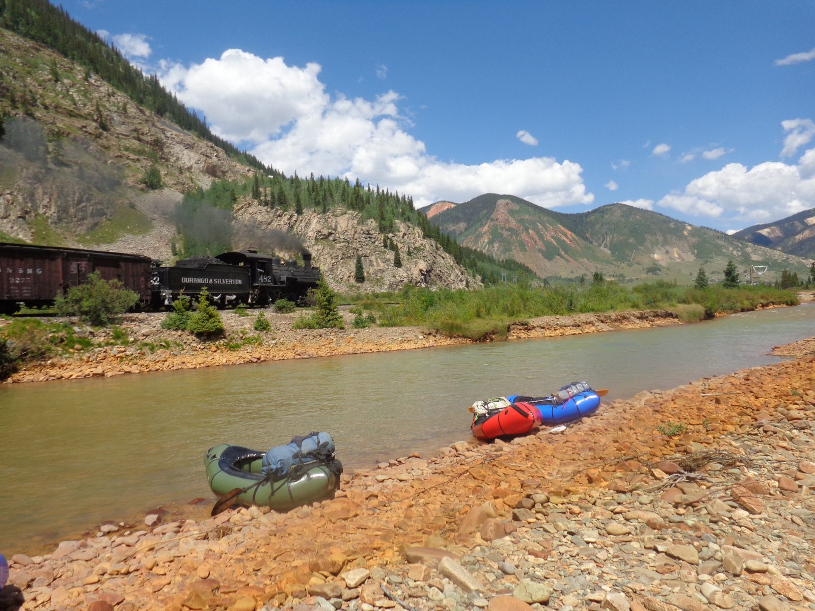 The first five miles back to the river were light and easy. We took the time to take a closer examination of No Name rapid, just below our takeout point. It looked consequential, earning its Class V rating as the main line dumped you into a recirculating hole at the bottom, after dodging a mean-looking pour off onto a jagged rock. The only one with the confidence and courage to attempt it was Kreston, and he geared up to go down as the rest of us packed rafts into our backpacks, finding a suitable spot to wade across upstream. After a rocky start, Kreston executed the sequence of consequential moves perfectly and packed up as we dried out on the other side of the river. The last ten miles burned into my retinas as two parallel lines extending into oblivion as we trudged along the tracks back to Silverton. I resigned myself to misery the last three miles as a passing deluge of hail just never quite passed. Soaking wet and fumbling with car keys, we changed into dry clothes and parted ways, united by the memories we shared in our minds rather than Instagram, as we all had made the choice to invest equipment rather than technology. But if any of us did get a smartphone in the future, this would be our hashtag: #buypackraftsnotsmartphones.