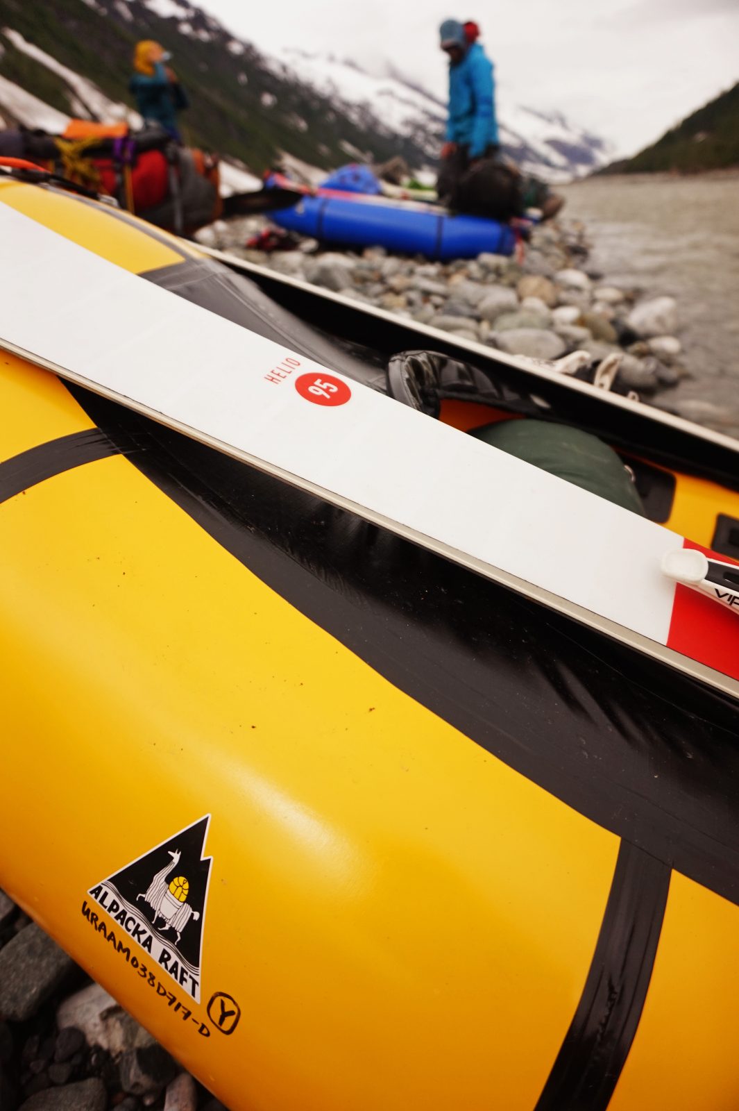 It was the first time we’d loaded packrafts with so much equipment and we were feeling slightly apprehensive about attaching awkward items like skis, crampons and ice axes. The low level fast-flowing glacial water hid boulders lurking just below the surface. As we floated, a black bear got spooked and ran off from the river bank. Steep snow-capped mountains gave way to rock walls and then thick forest blanketed both sides of the river. Floating our way down the braided Chilkat River, bald eagles flew overhead and perched on driftwood as we passed. We rounded a corner and saw the main highway, where the sound of glacier-fed rapids and paddle strokes would soon dissolve into the sound of cars speeding along asphalt.