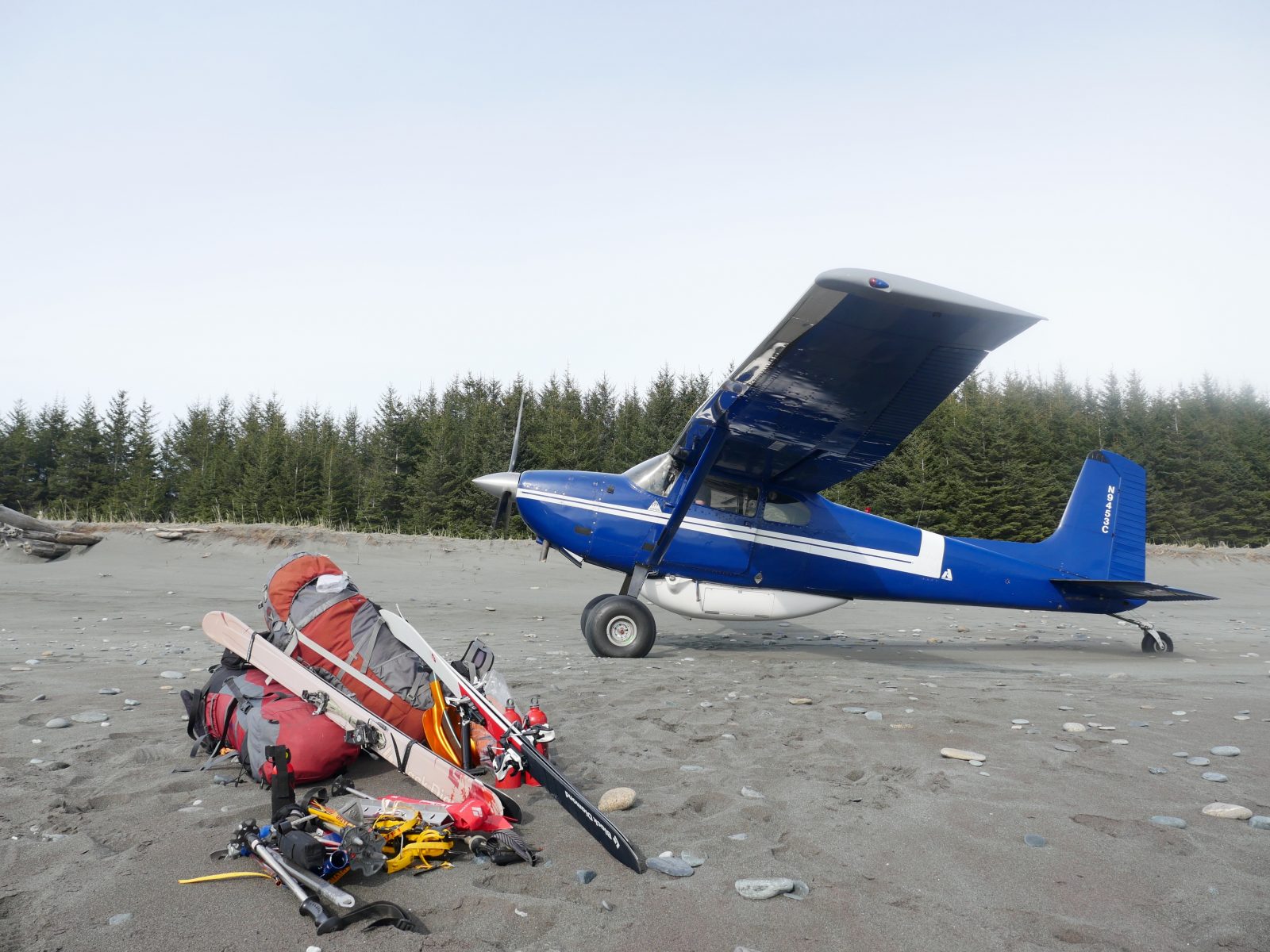 Christian, Alice, Bruno and I got dropped off by bush plane on a remote stretch of coastline near Lituya Bay, in South East Alaska. Our fifth expedition member, Brett, was to join us a few days in. Next to us we spotted the largest grizzly prints we’d ever come across. And a few metres away wolverine and wolf prints weaved across the sand. On the first night of our trip we went to sleep to the sound of waves rolling onto the shore, sleeping right next to a grizzly highway. We had three weeks and a goal to make it back to Haines, on skis and by packraft, climbing Mount Fairweather en route. It was just a few hundred miles, negotiating five glaciers and paddling down a river to finish.