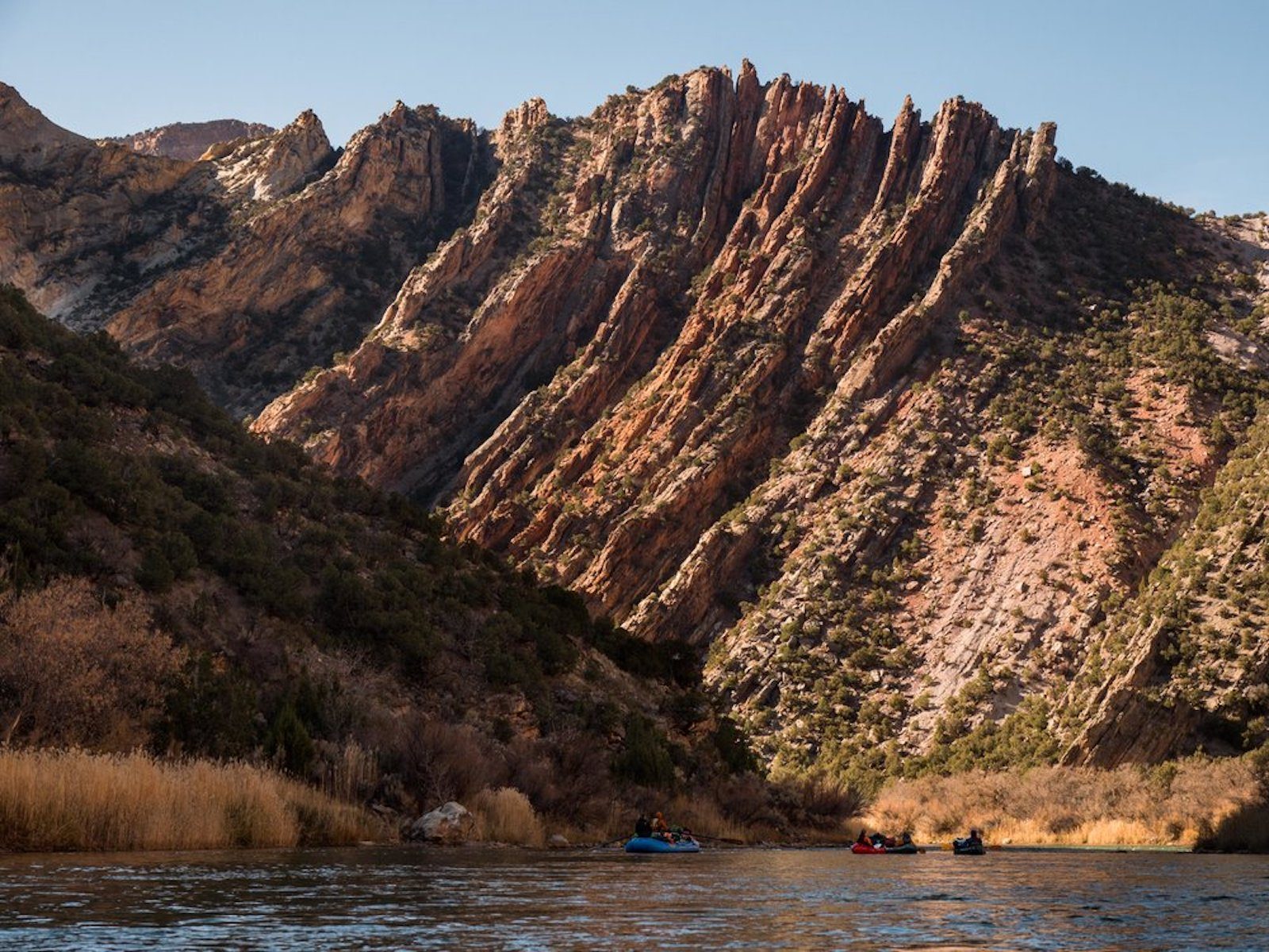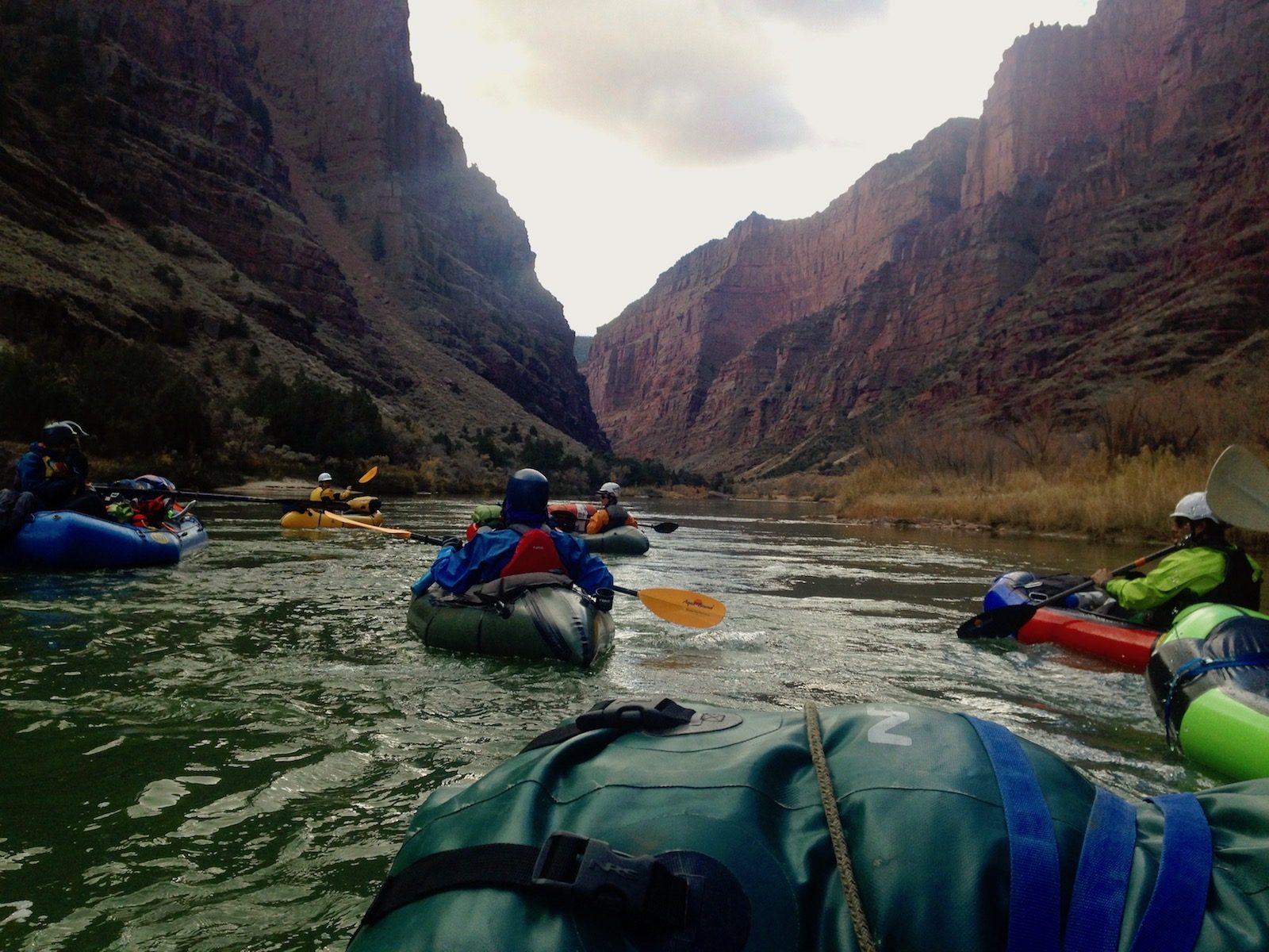 There were nine of us, seven in packrafts and two on a 14-foot oar-rig, a posse of brightly multi-colored specks floating lazily on the river so aptly named, the Green. The towering canyon walls of Uinta sandstone quickly swallowed even the mid-day sun, making the high temperatures of low to mid-40s feel much colder.