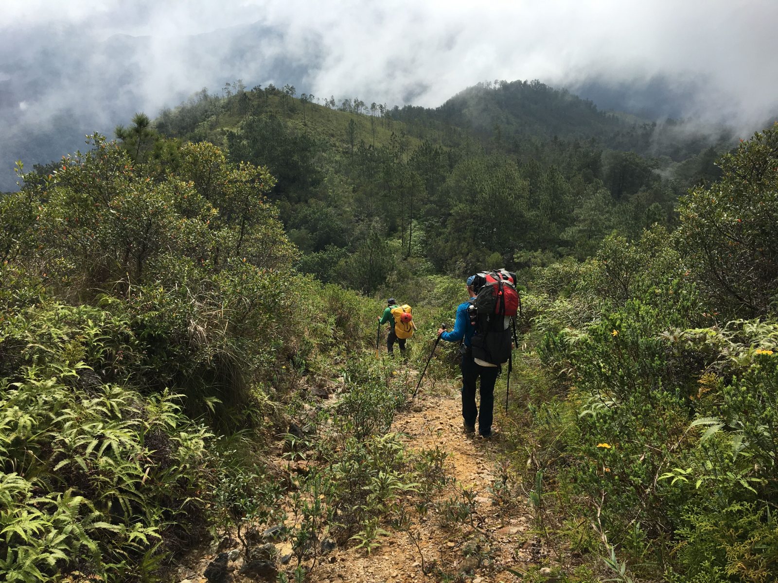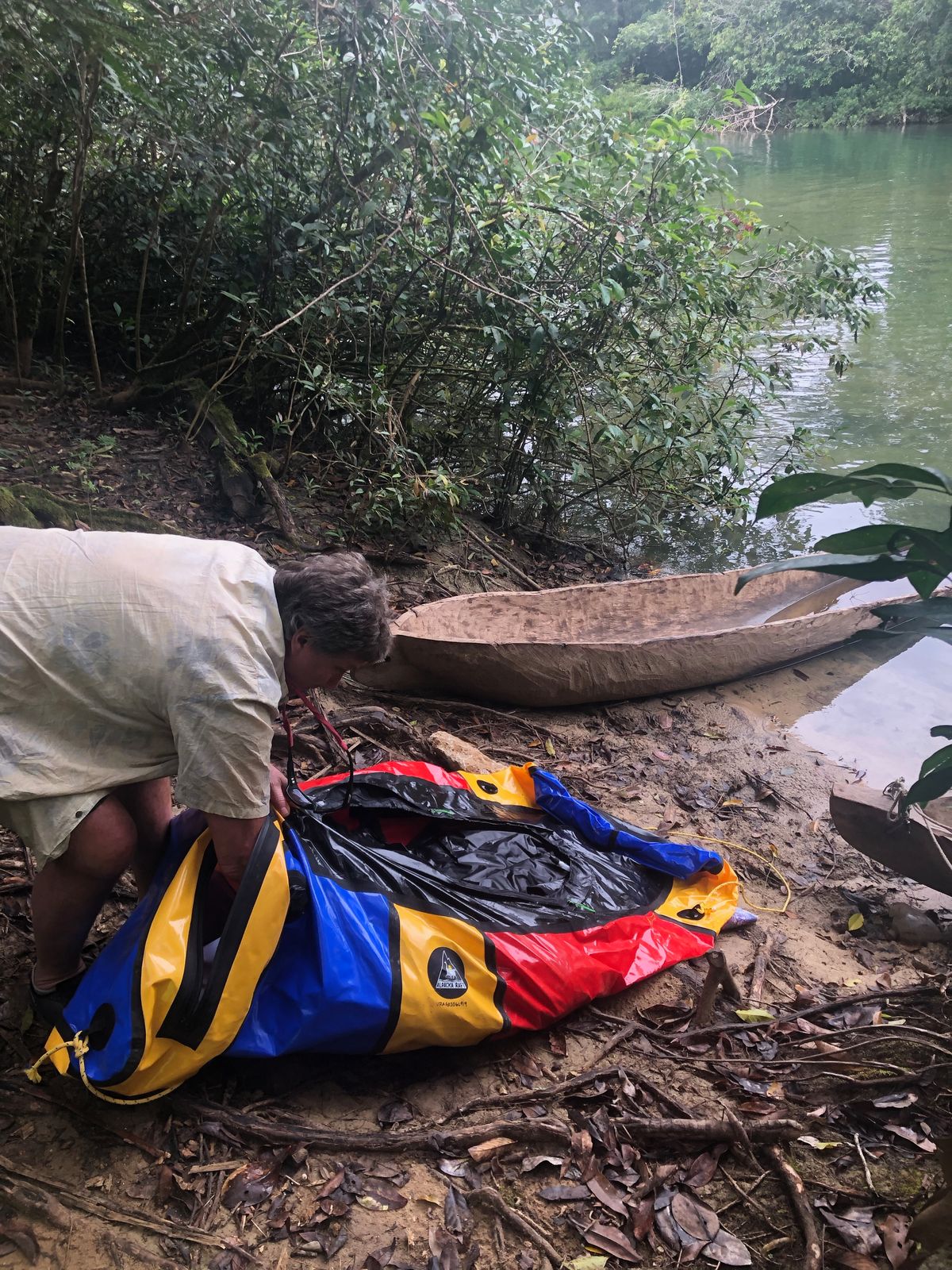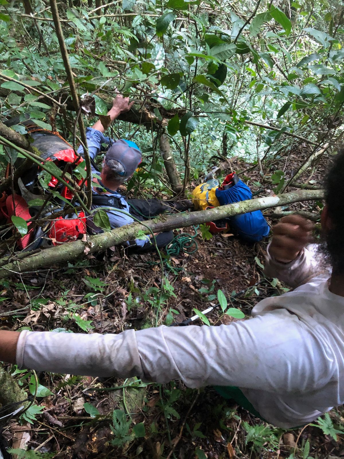 AJ had run the Sibun once before, his group hired a helicopter to drop them off at their put-in. Others had rappelled down the steep cliffs to access the river. We decided to backpack in with our packrafts at a point further upstream then other reports. AJ managed to get our permits from the forestry department, hire a local “chopper” who spent two days cutting a machete trail down the mountain and do a preliminary hike down the steep trail and set up rapelling gear on the steep cliffs towering above the river.