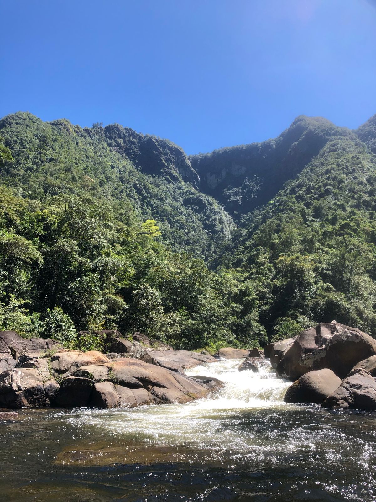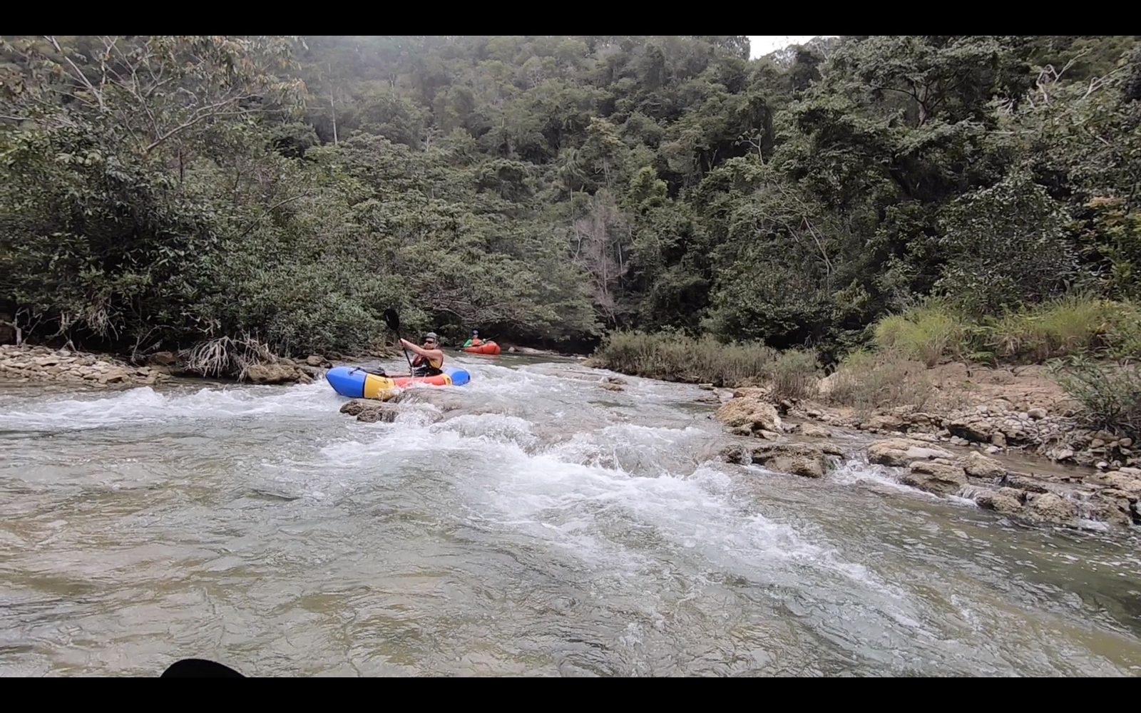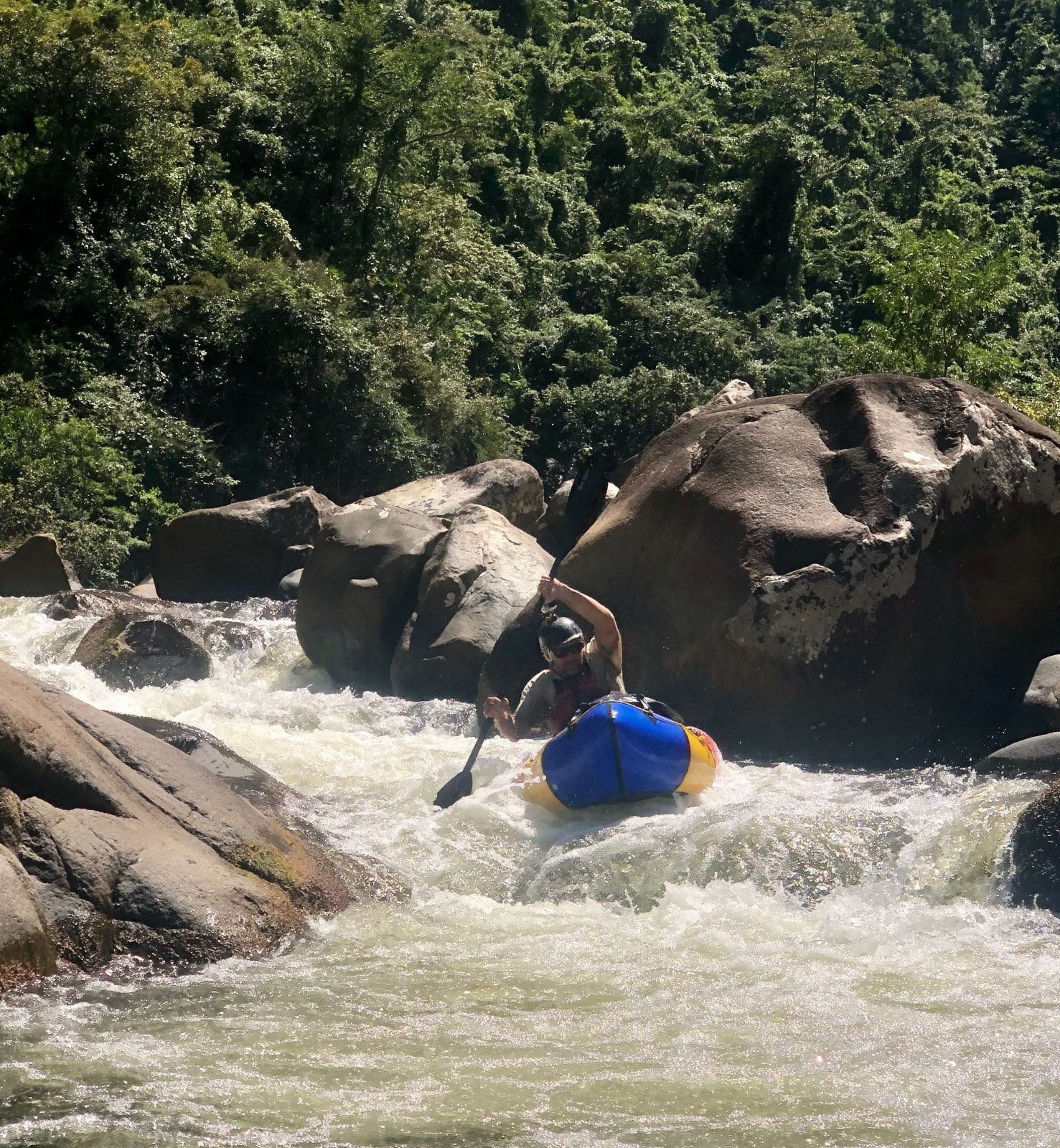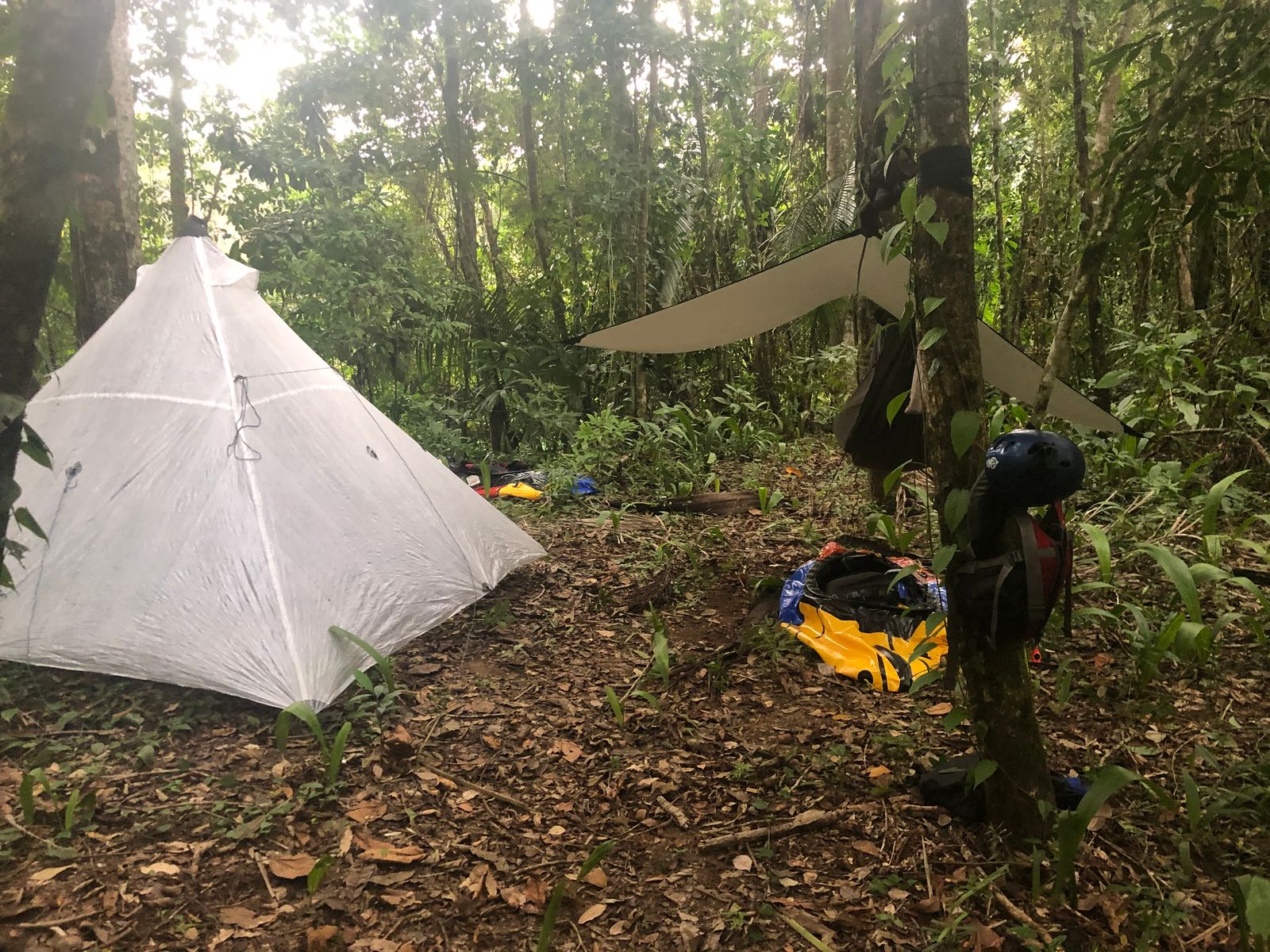 Our put-in site was further upstream than the other reports we had seen. We decided to take a day and explore even further upstream. We carried our packrafts upstream for a few hours. The river was small and very clear with small rapids. Dense jungle covered steep mountains lined both sides of the river. Thousands of fish scattered in the current. Some smaller fish were jumping very high out of the water. While, fish-eating bats would swoop down and catch them. Huge mountain mullet were also abundant.