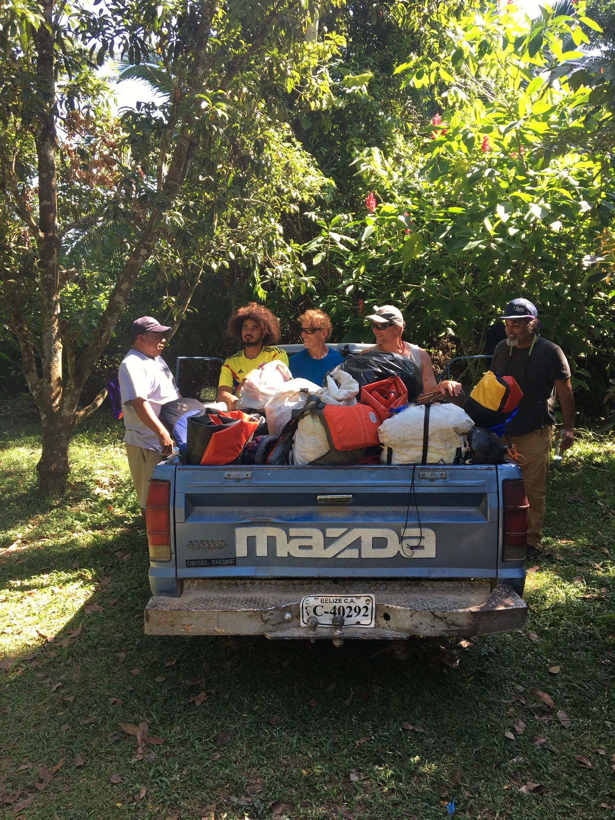 The gravel road weaved through jungle then through pine forests as we ascended the Maya Mountains. This is the most remote area of Belize—massive tracts of forest preserves and wildlife sanctuaries Abandoned artillery ranges littered the rarely visited area. These were used by the British military who often trained in Belize (Belize was a British colony formerly known as British Honduras) The rutted road eventually became impassable and we unloaded gear packed up and said farewell to our driver and began our descent to the Sibun River!!