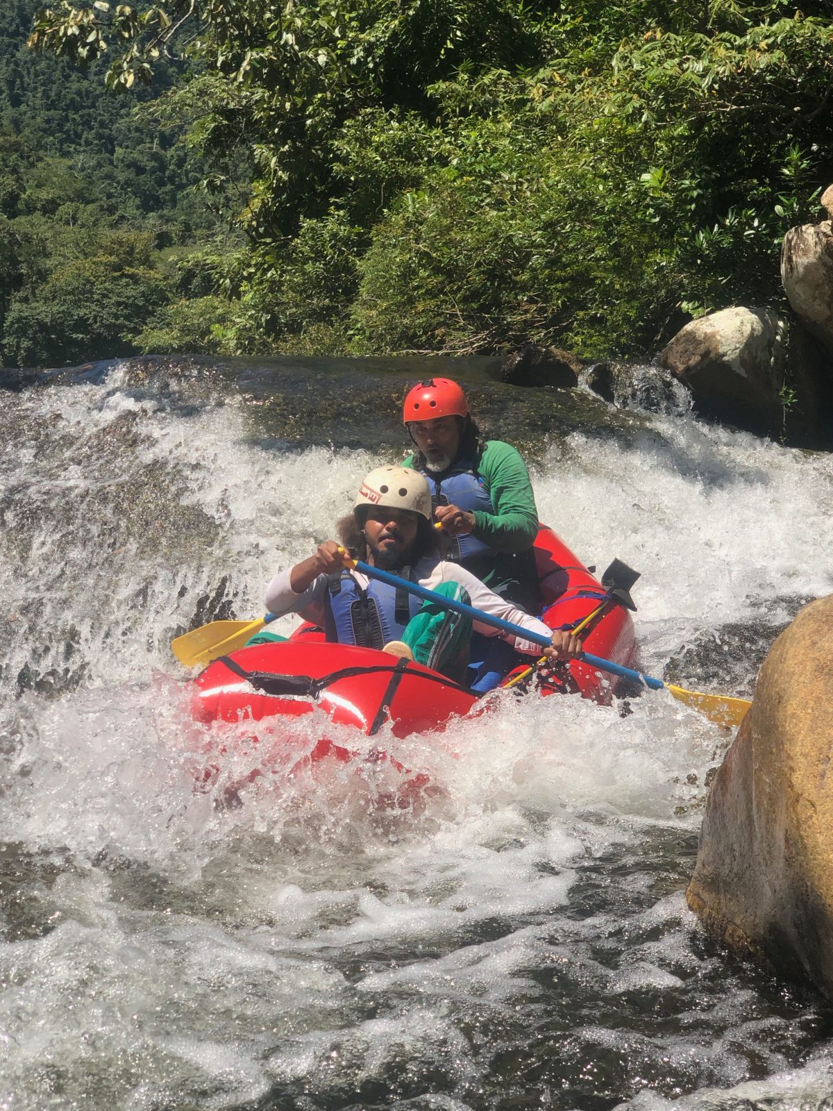 The generally peaceful current of the river is interrupted by small rapids and many runnable falls with up to 16’ drops into the warm tropical water.