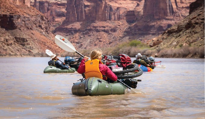Bikerafting, Adventure StoriesEszter and her crew grabbed their bikes and packrafts and headed out on an overnight bikerafting adventure just outside of Moab.