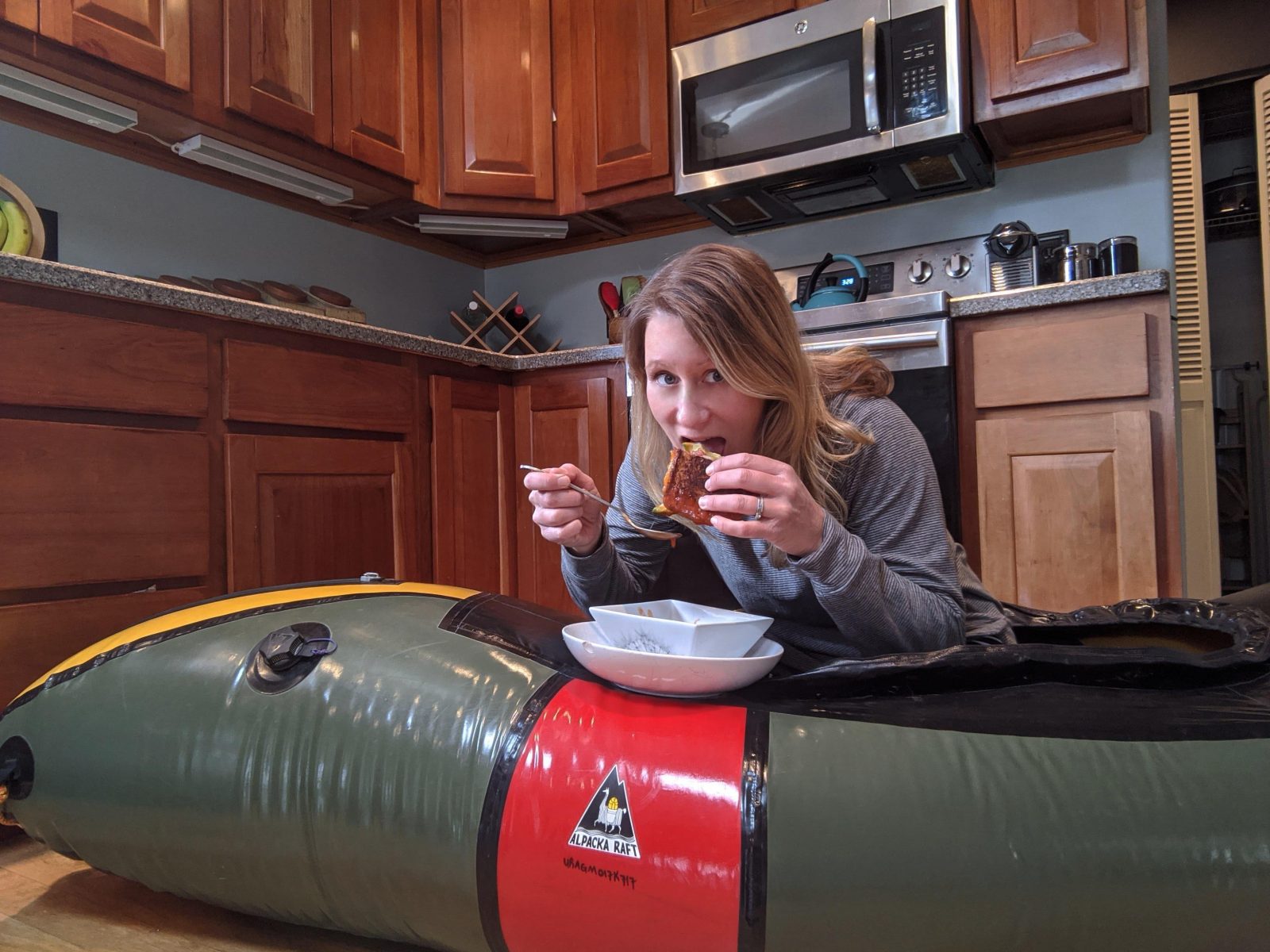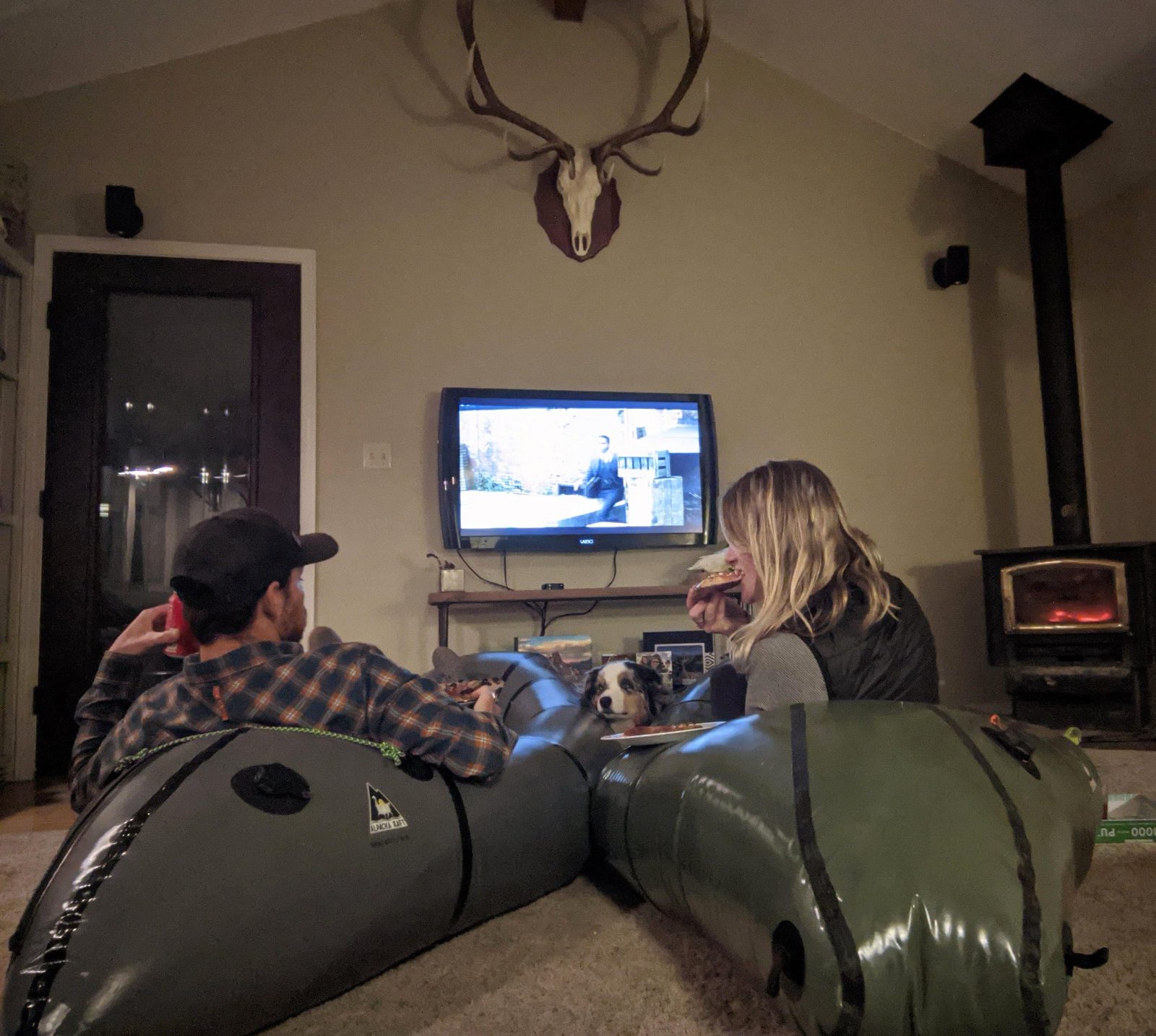 Food, chats with my husband, and a good movie are generally entertaining, especially when stuck at home. Bringing the packrafts into the mix, was a new element, and a comfortable one at that. We hunkered down, ate pizza and watched some Netflix as a great ending to the packraft day.