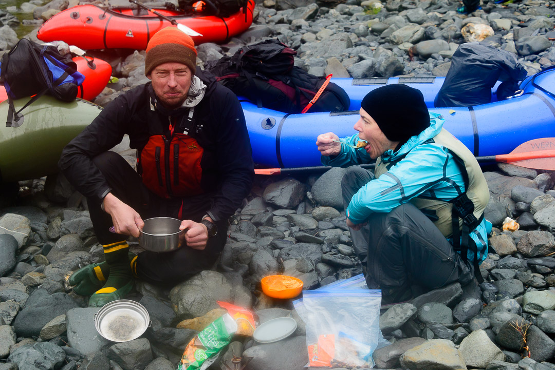 Captions and photos by Benj Wadsworth. Featured photo caption: Tim Halder warms up in the emerald pool at the put in, day three.