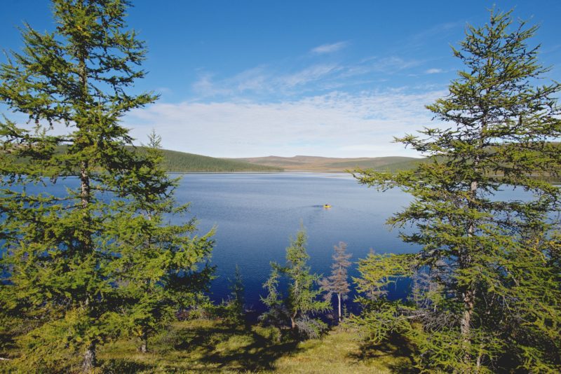 “A small lake with larches, like an oasis stretched in the middle of the bare tundra. A special microclimate makes these beaches suitable for the forest and cozy for the traveler. For those mountains on the horizon, the forest is no more. And this is only 8 kilometers.”